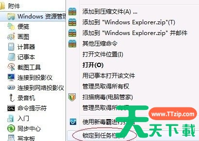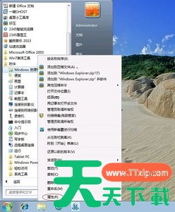 6、接着回到桌面,在开始菜单中找到资源管理器,右键选择它,打开“属性”