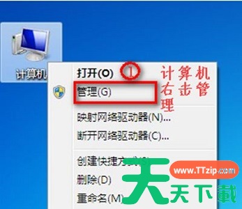 1、首先我们右键计算机,打开“管理”
