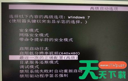 1、首先重启电脑,然后开机时连续按“F8”进入高级启动选项,选择“最近一次的正确配置”就能进入系统了。