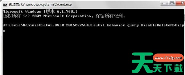 2、在命令框中输入“fsutil behavior query DisableDeleteNotify”