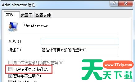 3、取消勾选图中“用户不能更改密码”确定即可。