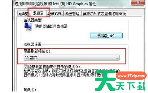 7、在监视器中可以更改屏幕刷新率。