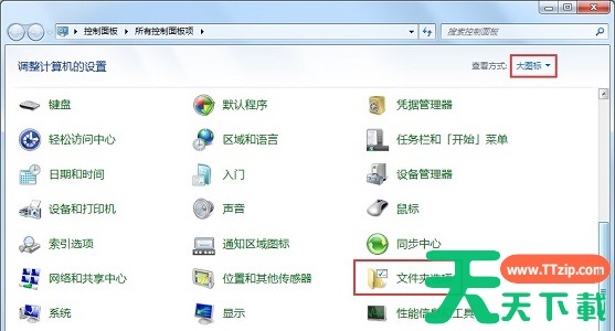 2、将查看方式改为“大图标”,然后选择“文件夹选项”