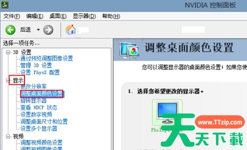 4、然后找到“调整桌面颜色设置”,如图所示。