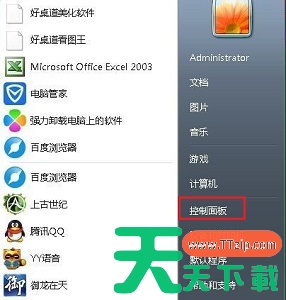 1、首先我们可以点击左下角的开始菜单,打开之后选择“控制面板”打开。