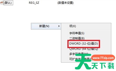 5、在右侧新建一个“DWORD值”