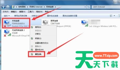 3、找到需要更改的连接,右键选择“属性”