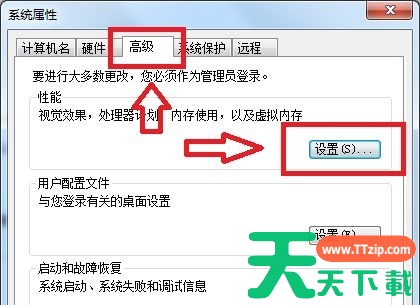 3、在“高级”选项卡中找到性能下的“设置”。