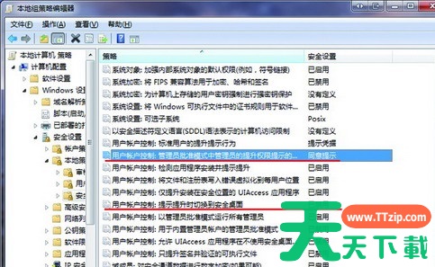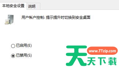 5、再回到第3步中,双击打开“用户账户控制:提示提升时切换到安全桌面”,更改为“已禁用”即可。