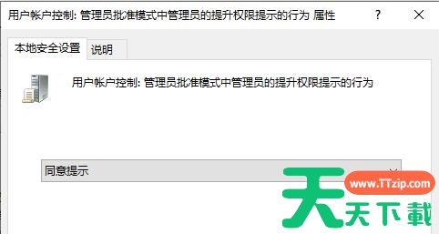 4、双击打开上图位置的“用户账户控制:管理员批准模式中管理员的提升权限提示的行为”,设置为“同意提示”