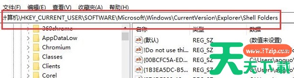 “计算机HKEY_CURRENT_USERSOFTWAREMicrosoftWindowsCurrentVersionExplorerShell Folders”