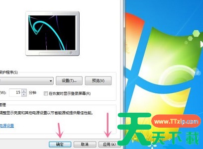 Win7系统支持用户自定义改变屏保画面,在个性化的屏幕保护设置中,我们也可以改变它的屏保模式,从而改变它的显示时间。下面就跟着天天下载Ttzip一起来看一下具体的更改操作方法吧。