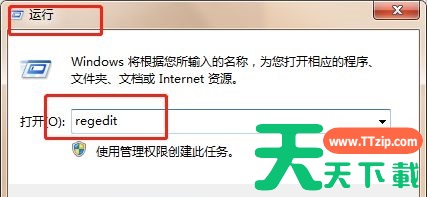 2、在运行中输入“regedit”回车确定。