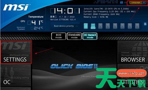 1、首先在图示右上角位置将界面更改为中文,再点击左边的“SETTINGS”