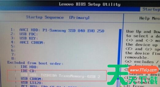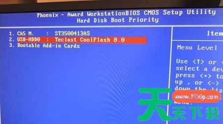 3、进入之后将带有usb字样的u盘移动到1号位就可以了。(使用F5/F6或者pageup/pagedown)