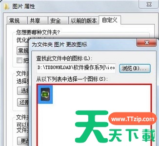 Win7系统长时间使用后,可能会有朋友看腻了win7默认的文件图标,想要更新一下,但不知道win7是如何改变文件图标的。实际上只需文件属性即可更改,下面就一起看看天天下载Ttzip带来的相关教程吧。