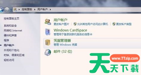 3、接着,在弹出的【用户账户】窗口下,选择凭据管理器,如下图所示。