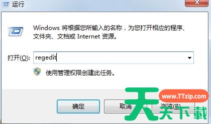 2、输入“regedit”回车确定。