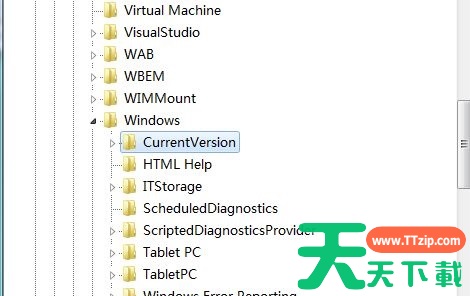 3、找到“HKEY_LOCAL_MACHINESOFTWAREMicrosoftWindowsCurrentVersion”路径。