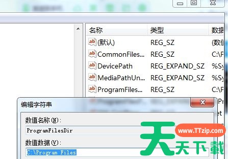 4、双击打开“ProgramFilesDir”文件,将数值更改为需要保存的路径位置。