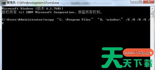 6、然后输入“xcopy “C:Program Files” “D:window” /E /H /K /X /Y”即可。(这是将保存位置转到D盘,如果是其他盘,就将D改为其他盘符即可)