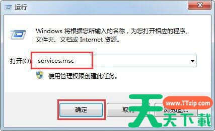 2、在弹出的对话框中输入services.msc命令,单击“确定”,进入服务项界面;如图所示: