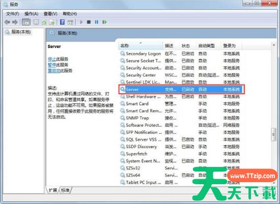 3、在弹出的服务对话框中,找到[服务器]服务,然后双击进入设置对话框;如图所示: