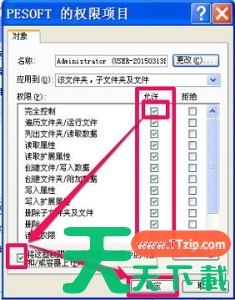 8、将所有权限设置为“允许”,然后勾选图示选项,点击“确定”
