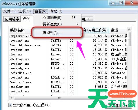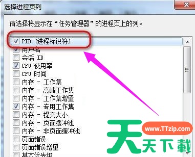 win7电脑中某个程序的pid信息如何查看?有用户想要去查询运行软件的pid信息,因为在自己需要使用的软件被一些进程给占用了,需要去将它们进行关闭。那么如何去查看程序的pid信息呢?一起来看看具体的操作教程分享吧。 操作方法 1、鼠标右键点击任务栏,点选“启动任务管理器”。 2、弹出任务管理器窗口。 3、点击“查看”,然后点击“选择列”。 4、弹出选择进程页列的窗口。 5、点选“PID(进程标识符)”的复选框。 6、回到刚才的任务管理器,就可以看到PID号的一列数据了。 除特别注明外,本站所有文章均为 天天下载 原创,转载请注明出处来自 https://www.ttzip.com/215783.html