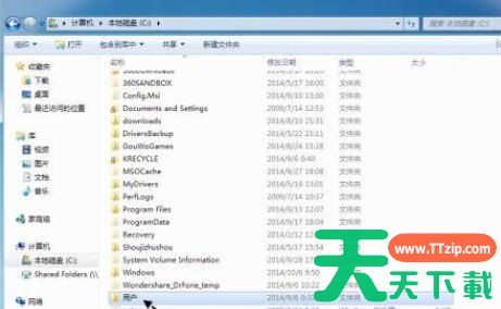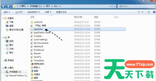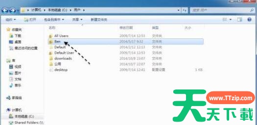 4、点击后一般都会有好几个目录,此时应该找到与当前登录用户同名的目录。(天天下载Ttzip用的用户名是Ben)