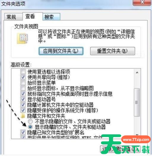 6、如果在你的电脑中没有找到这个目录的话,请先打开系统的隐藏选项。在系统的“文件夹选项”的“查看”列表中,选中“显示隐藏的文件、文件夹或驱动器”。