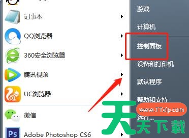 1、点击左下角的开始随后点击右侧的“控制面板”。