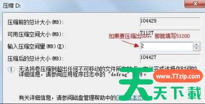 3、随后即可将空闲空间比较大的磁盘进行压缩,将要压缩大小x1024MB即可求出填写空间量。