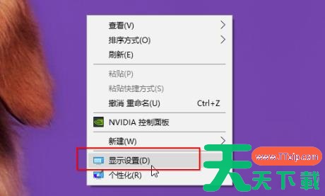 1、右击桌面空白处,点击“显示设置”。