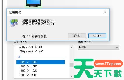 4、点击下拉进行144hz的选择。