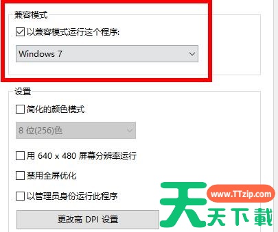 3、在兼容模式中勾选“以兼容模式运行这个程序”并点击下拉选择“windows 7”即可。