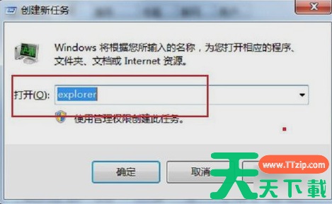5、然后在输入框里面输入“explorer”,再点确定即可。