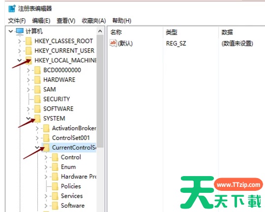 5、在打开的注册表编辑器页面中依次找到HKEY_LOCAL_MACHINE、SYSTEM、CurrentControlSetControl。