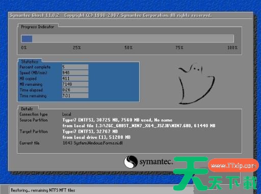 5、解压完成后,自动重启后开始安装雨林木风Win7系统;