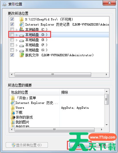 6、设置索引的位置,建议设置具体文件夹;