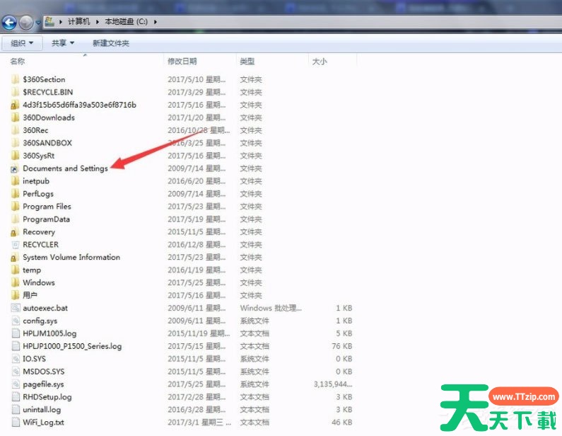 1、打开C盘的根目录默认是没有Documents and Settings系统文件夹的,因为系统文件夹默认都是隐藏的;