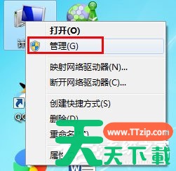 1、在桌面计算机右键选择“管理”;
