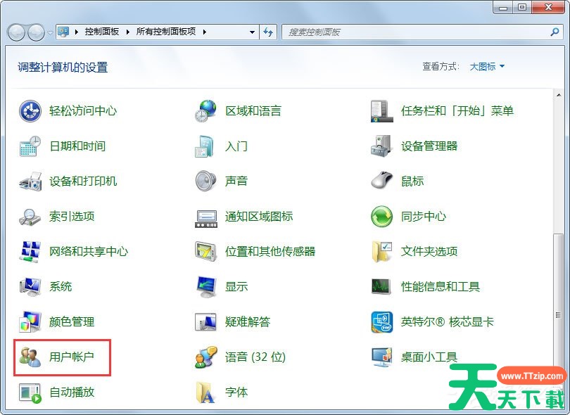 1、打开控制面板,找到用户账户选项;