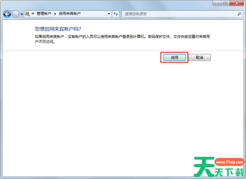 3、如果未启用Guest账户,点击进入后选择启用,如果已启用可以选择“关闭来宾账户”在这里修改和上面的方式是一样的,这里启用了上面的打勾也会同时取消的。