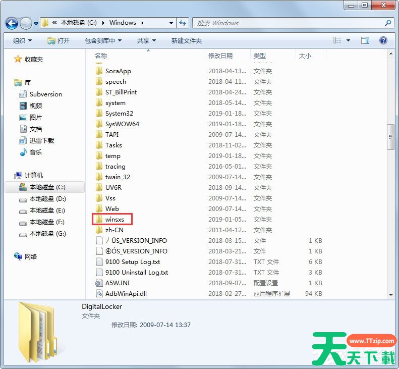 以上就是天天下载Ttzip跟大家分享的Win7 C盘清理方法介绍,按照以上方法进行操作后,C盘的空间就会节省下来很多,电脑运行速度就会大大加快了。