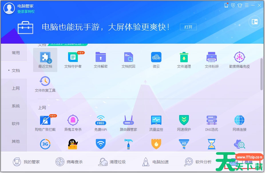 1、打开“电脑管家”→点击“工具箱”;