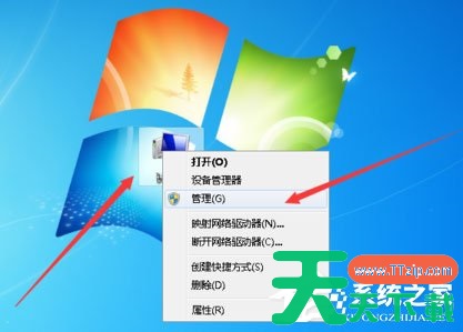 1、在桌面计算机图标鼠标右击并选择管理;