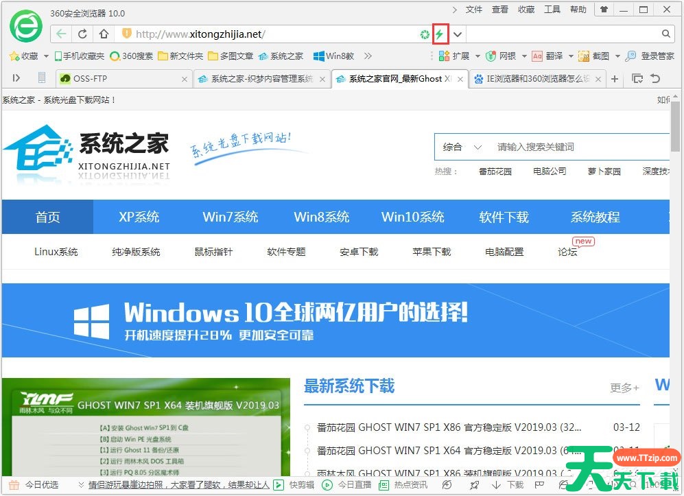 1、打开360浏览器,找到地址栏闪电标志;