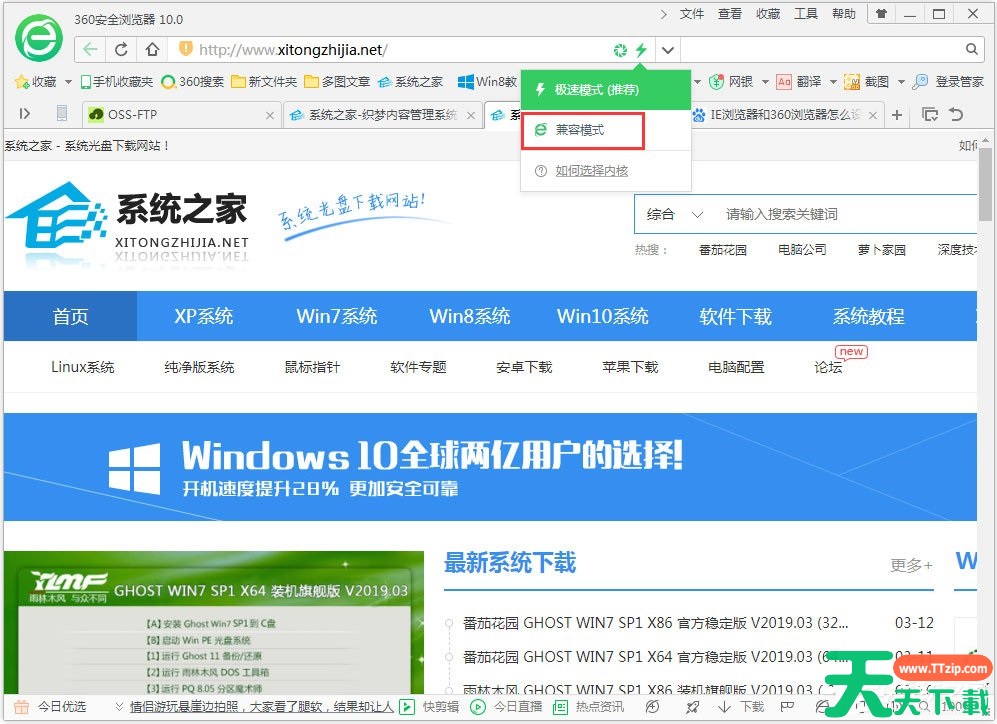 2、点击闪电标志,出现兼容选项,如下图所示,选择兼容模式!