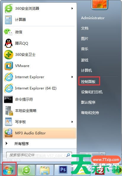 1、在电脑桌面的左下角点击Win图标,在弹出的菜单列表中单击【控制面板】选项;